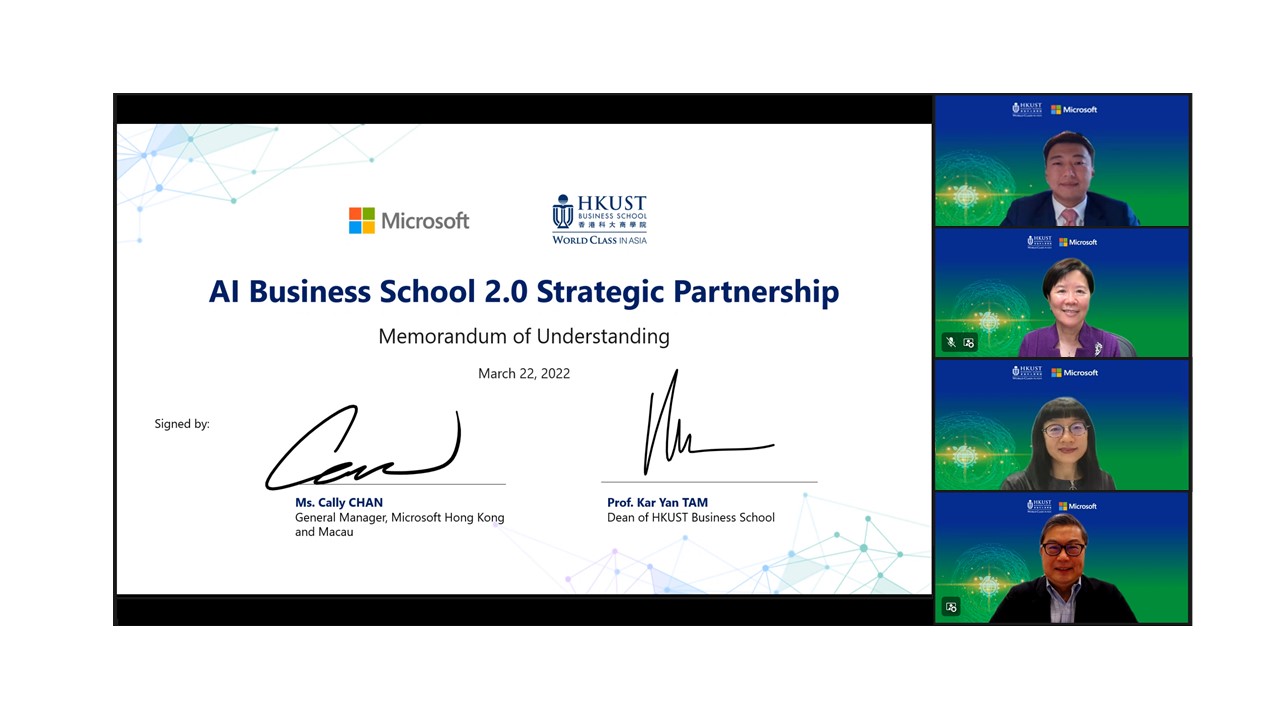 Microsoft香港与香港科技大学工商管理学院(科大商学院)签订人工智能(AI)商学院2.0策略合作备忘录,扩展双方在香港首个AI相关工商管理硕士(MBA)选修科以外的合作。