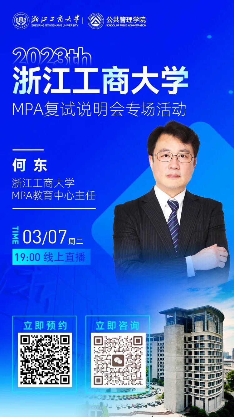 浙江工商大学MPA教育中心何东主任为考生带来2023最新MPA相关内容解读及答疑,直接与大佬对话,机会难得!马上预约!