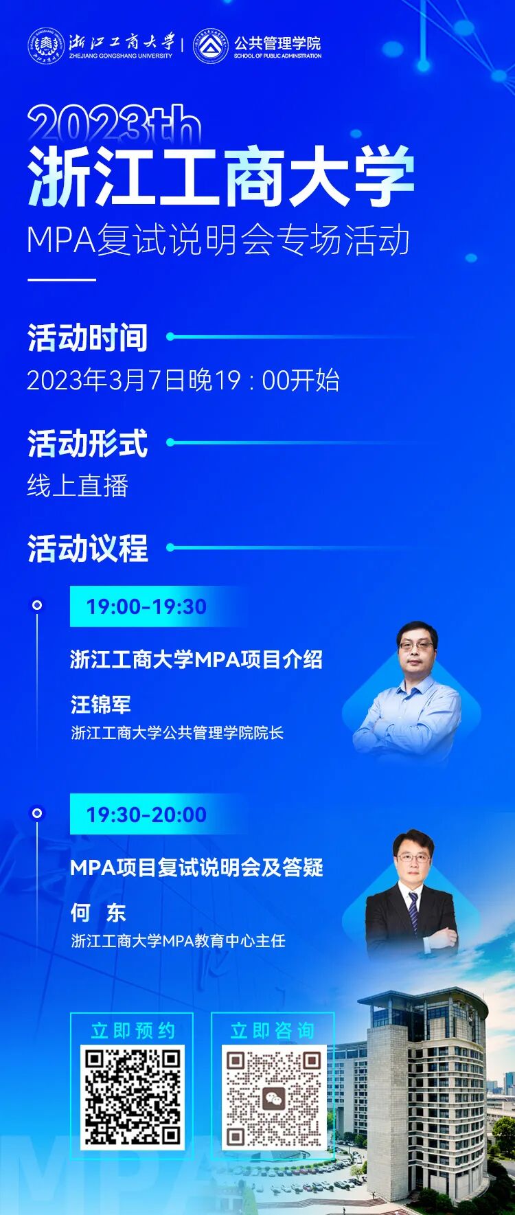 3月7日晚上7点,浙江工商大学MPA复试说明会火热来袭!